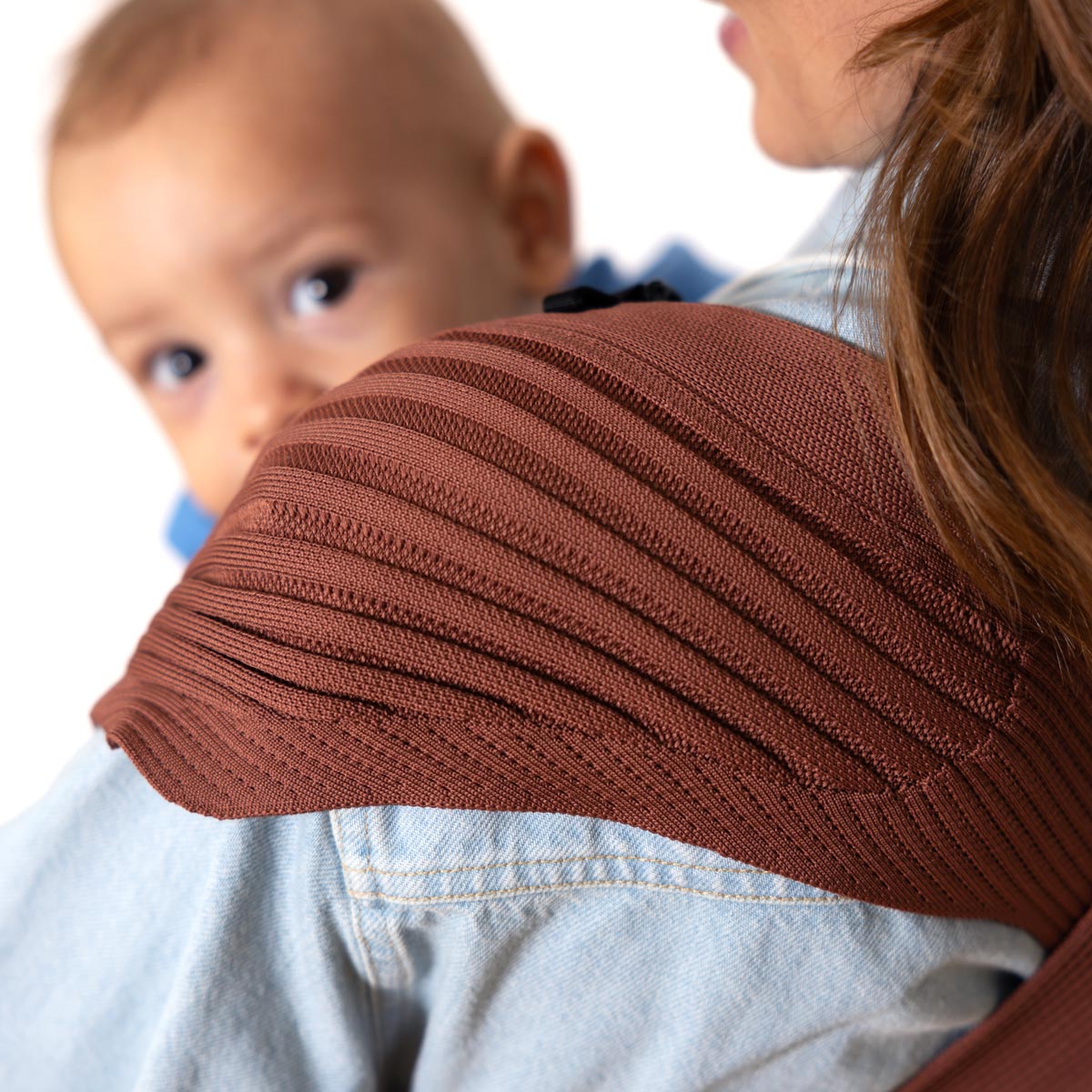Mit dehnbarer Rippenstruktur passt sich das Gestrick der Schulterpartie flexibel an und verteilt Babys Gewicht gleichmäßig ohne auszuleiern. Das schont den Rücken und entlastet die Muskulatur. So haben Verspannungen, die durch die punktuelle Belastung von Standardgurten entstehen können, keine Chance.